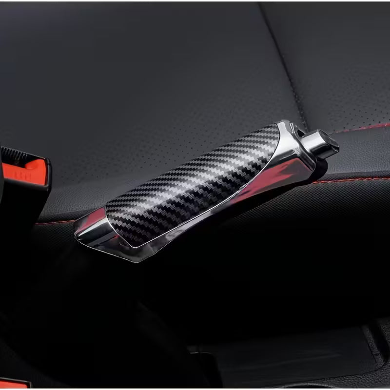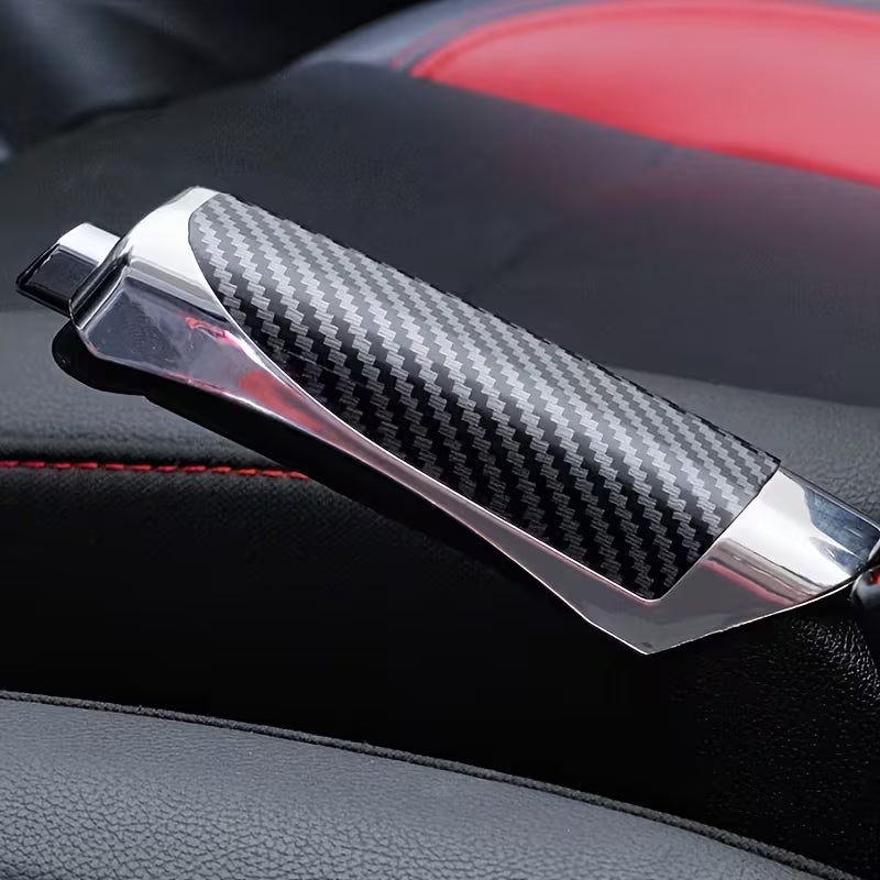 Copertura decorativa per freno a mano con design effetto fibra di carbonio.