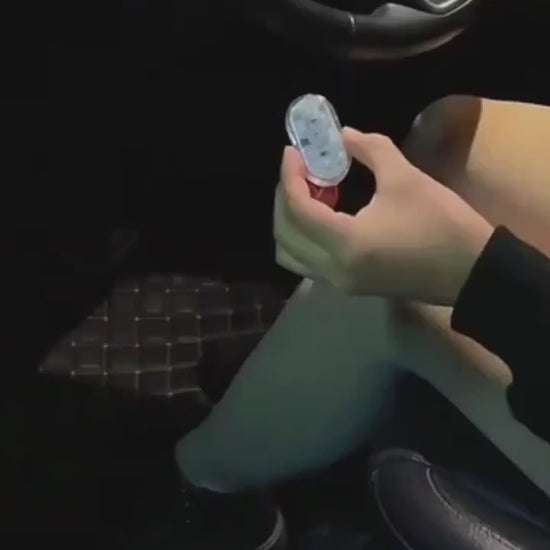 Il corpo della luce è realizzato in plastica resistente e leggera, con base piatta per un posizionamento stabile sul pavimento o sotto il cruscotto. La sorgente luminosa a LED fornisce una luce uniforme e discreta, sufficiente per illuminare l’area dei piedi senza disturbare la guida.