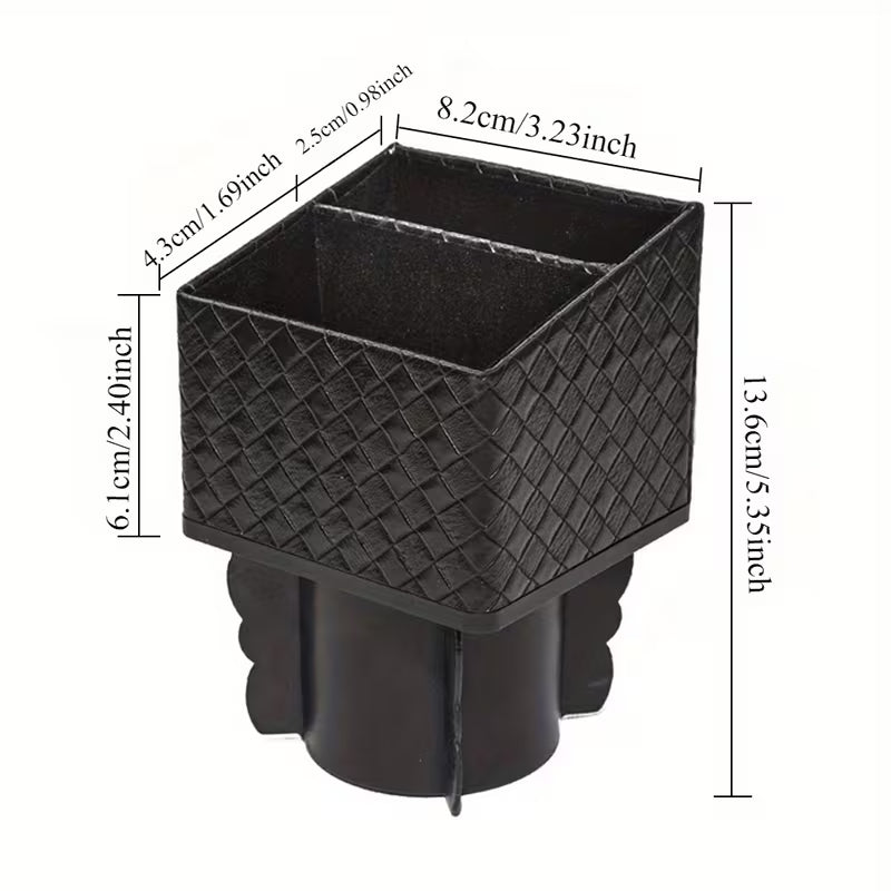 L’organizzatore da porta-bicchiere è progettato per sfruttare al massimo uno degli spazi più accessibili dell’auto, trasformandolo in un vano aggiuntivo capiente e funzionale. Grazie al suo design profondo e alla struttura rigida, permette di riporre oggetti essenziali in modo stabile e ordinato, mantenendoli sempre a portata di mano mentre si guida.